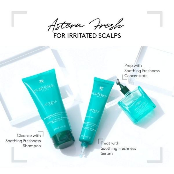 Un apaisement instantané dès le premier shampooing. Frais et léger, la texture fondante du Shampooing apaisant fraîcheur ASTERA FRESH calme efficacement les démangeaisons du cuir chevelu, tout en procurant une agréable sensation de fraîcheur et d’apaisement. Les cheveux sont souples, brillants, faciles à démêler et à coiffer. Résultats : Nettoie en douceur, assainit et apaise le cuir chevelu. Frais et léger, le cuir chevelu retrouve confort et bien-être. Mode d’emploi : Appliquer sur l »ensemble du cuir chevelu. Emulsionner puis rincer. Procéder à une seconde application et laisser poser 2 à 5 minutes. Rincer abondamment. A utiliser aussi souvent que nécessaire (pH neutre). Ce qu’on aime: Lave en douceur! Formule hypoallergénique